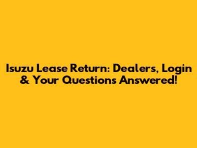 Isuzu Lease Return: Dealers, Login & Your Questions Answered!