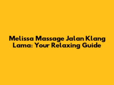 Melissa Massage Jalan Klang Lama: Your Relaxing Guide