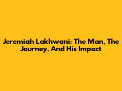 Jeremiah Lakhwani: The Man, The Journey, And His Impact