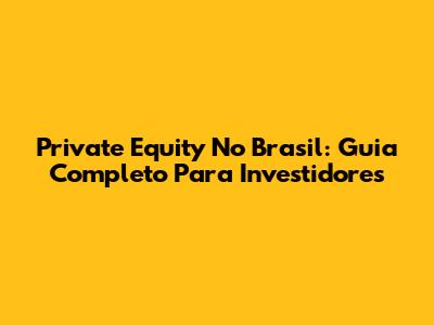 Private Equity No Brasil: Guia Completo Para Investidores