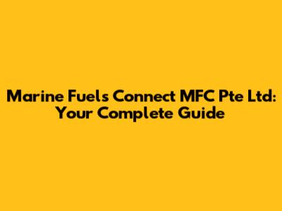 Marine Fuels Connect MFC Pte Ltd: Your Complete Guide