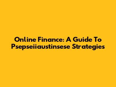 Online Finance: A Guide To Psepseiiaustinsese Strategies