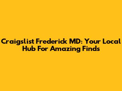 Craigslist Frederick MD: Your Local Hub For Amazing Finds