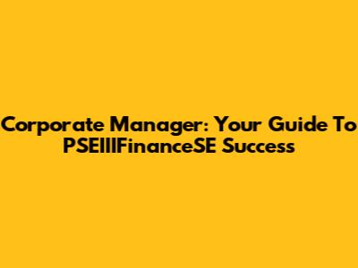 Corporate Manager: Your Guide To PSEIIIFinanceSE Success
