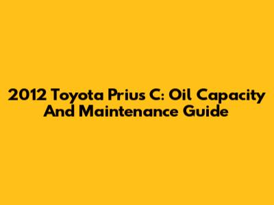 2012 Toyota Prius C: Oil Capacity And Maintenance Guide
