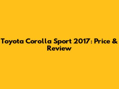 Toyota Corolla Sport 2017: Price & Review