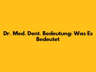 Dr. Med. Dent. Bedeutung: Was Es Bedeutet